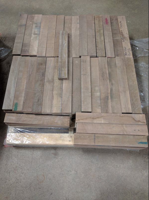 Certain species, mainly hard maple and cherry are moved to our cut to size plant, which produces over 200 containers of high quality dimension blanks per year. Our quality program is extensive in our facility, utilizing random quality checks by our Quality people at the beginning of each shift to insure that the customer is receiving exactly what is required.Whether you are looking for blanks, sorted to width, or ripped to width, we would be happy to quote your specific needs.Each piece of wood cut on our dimension plant is stamped with a number to insure accountablility of our employees. This system allows management to gauge the employees ability to make quality conscience decisions.Our cut to size has an excellent reputation in Europe for above average quality, consistency in colour, thickness and service. We stand behind our production 100% against claims and we are confident in our ability to maintain consistent quality year after year.
